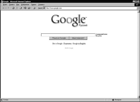 Рис. ІѴ.51. Скромный интерфейс сервера Google