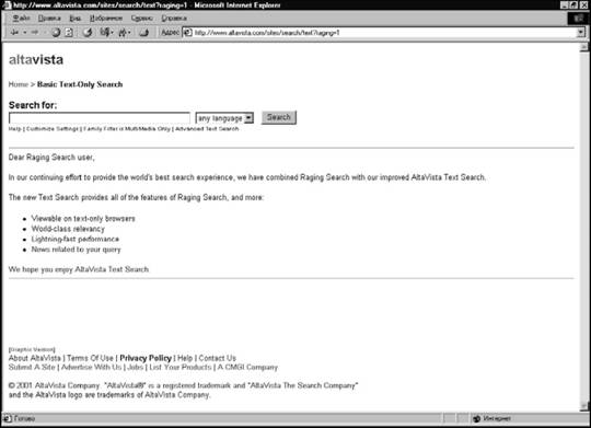 Доступ к базе данных AltaVista можно получить при помощи сервера Raging (www.raging.com) (рис. IV.54), который не отвлекает внимание на всевозможные сервисы.