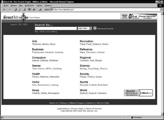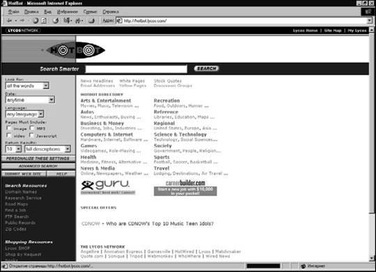 Рис. ІѴ.60. Поисковая машина, совмещенная с каталогом HotBot