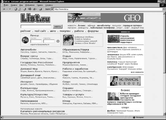 Рис. IV.65. Самый большой каталог русскоязычного Internet List.ru