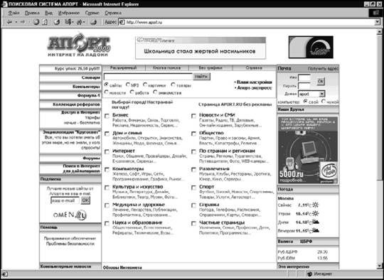 Каталог работает вместе с поисковой системой Апорт! Каталог охватывает не только российские серверы, но и зарубежные, имеющие отношение к России.