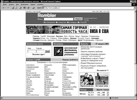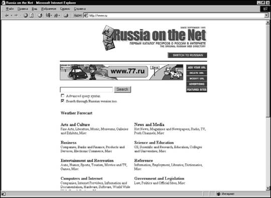 Существует рейтинг русских страниц Тор 100, который удобно использовать как каталог.? Russia on the Net. http://www.ru (рис. IV.69).