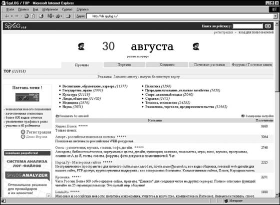 Содержит каталог ресурсов с рейтингом посещаемости.