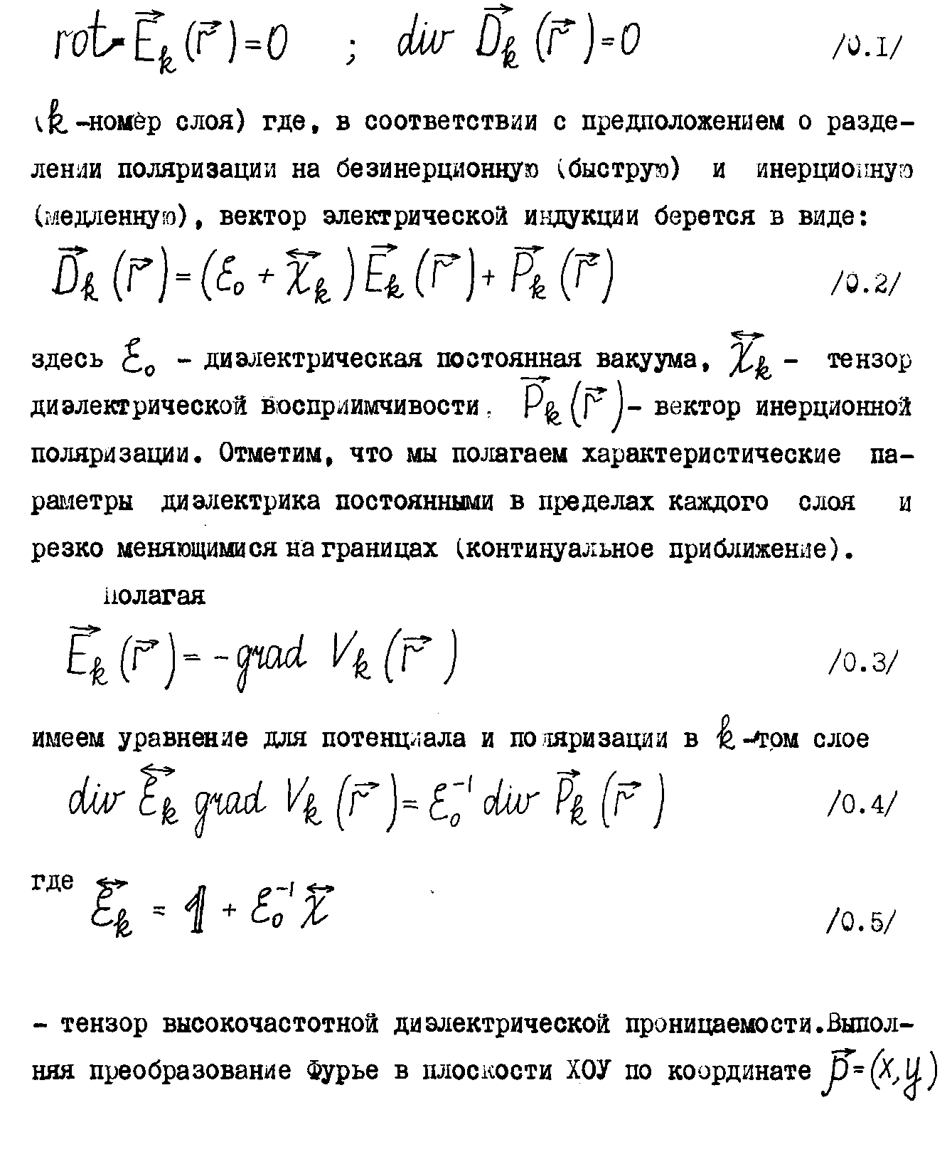 vl.-номер слоя) где, в соответствии с предположением о разделении поляризации на безинерционную (быструю) и инерционную (медленную), вектор электрической индукции берется в виде: