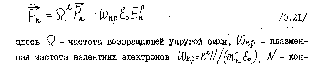 После получения потенциалов электрических полей находится потенциальная энергии колебаний решетки что, после соответствующего преобразования Фурье и использования утэавнений" движения колебаний' в оптической ветви