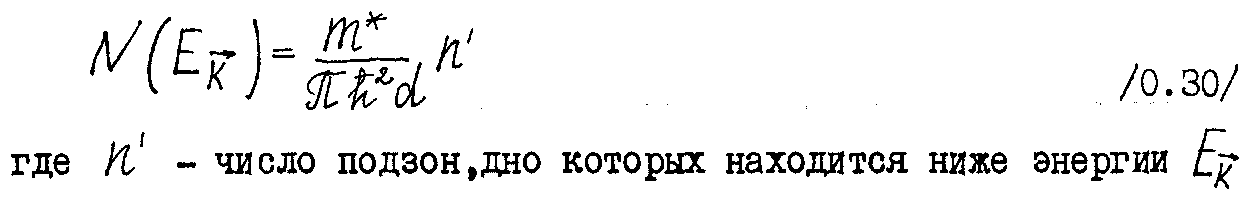 Т.о., энергетичеешй спектр разбивается на отдельные перекрывающиеся размерные подзоны. Такие подзоны схематически показаны на рис.0.3. Отличительной особенностью этого спектра является также наличие конечной минимальной энергии