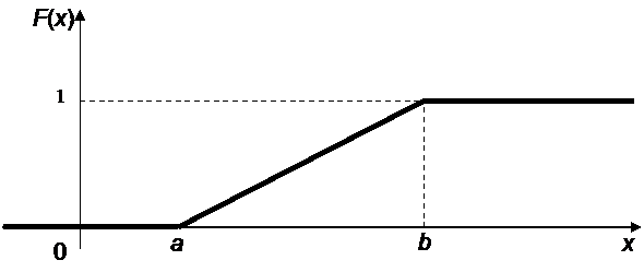Функция распределения случайной величины X, распределённой по равномерному закону, есть
