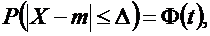 Вероятность того, что отклонение случайной величины X, распределённой по нормальному закону, от математического ожидания m не превысит величину D > 0 (по абсолютной величине), равна