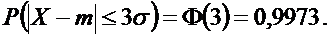 Если случайная величина X имеет нормальный закон распределения с параметрами m и s, то практически достоверно, что её значения заключены в интервале (m - 3s, m + 3s).