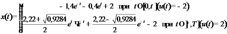 ![]() | Аналогично строится оптимальное управление и оптимальная траектория в случае, когда точка находится ниже линии переключения (в этом случае постоянный вектор ). Если находится на линии переключения, то, очевидно, оптимальной траекторией является кусок самой линии переключения. |