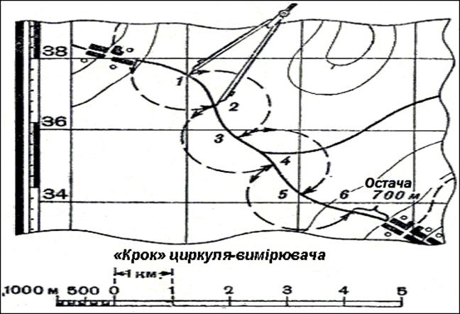 Визначення довжини відрізка за масштабом і відкладання його по карті проводиться за допомогою циркуля, лінійки або смужки паперу.