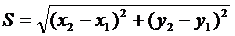 де S – відстань на місцевості між точками, м;