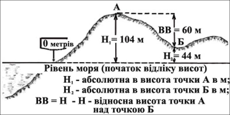 Рисунок 1.33 – Абсолютні і відносні висоти точок