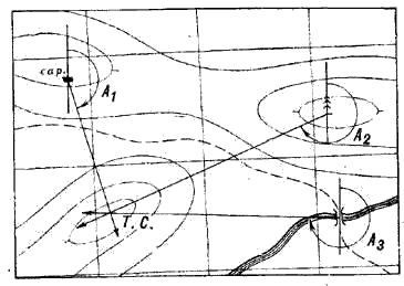 Рис.61 Определение точки стояния засечкой по трём ориентирам
