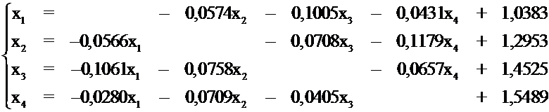 Последняя система представляет собой расчетные формулы метода простой итерации.