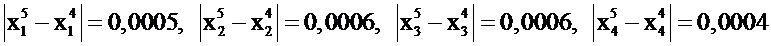 , поэтому итерации заканчиваем. Приближенным решением системы являются следующие значения:
