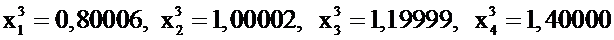 . Подставим начальное приближение в правую часть (4). Вычисляя левые части, получим значения