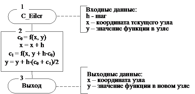 Схема алгоритма решения ОДУ методом Рунге-Кутта 4-го порядка отличается алгоритмом расчёта новой точки (Рис. 7.5).