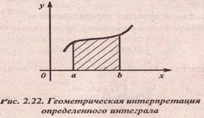 Определённый интеграл численно равен площади криволинейной трапеции, ограниченной прямыми х=а; х=b; у=0 и частью графика функции