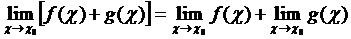 ▫ Предел суммы двух функций равен сумме пределов этих функций