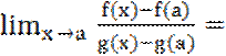 Теорема(правило Лопиталя):Предел отношения двух бесконечно малых или бесконечно больших функций равен пределу отношения их производных,если последний предел существует, т.е: